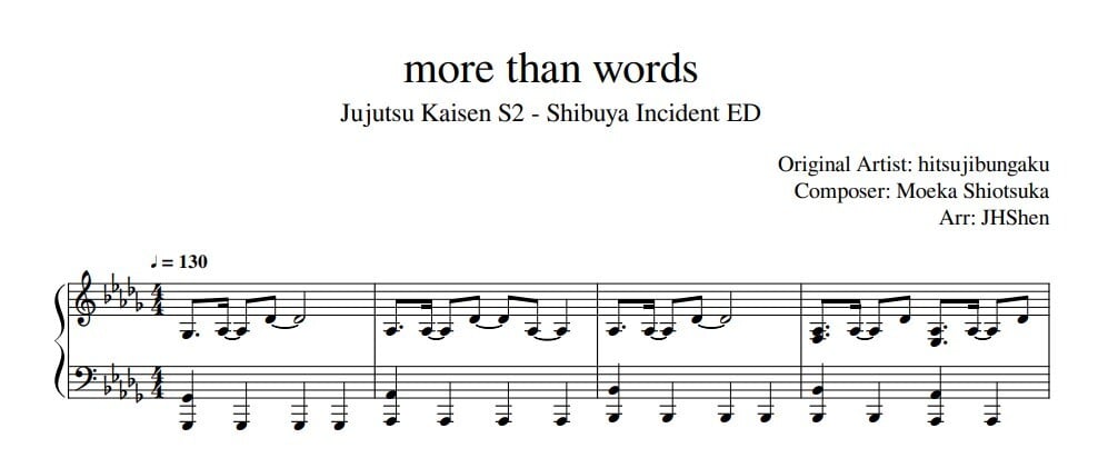 This is the Sheet Music PDF of JHShen's piano cover of "Jujutsu Kaisen S2 - Shibuya Incident ED"